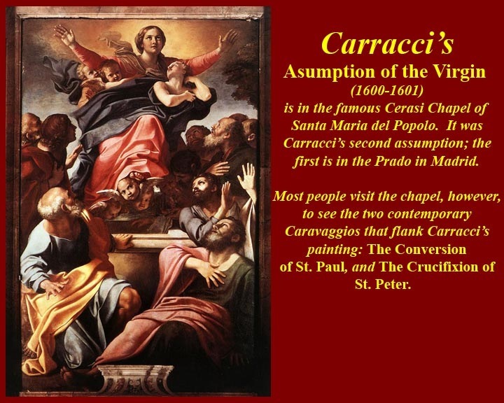 In the section on Carracci above it is mentioned that people go to the Cerasi Chapel in Santa Maria del Popolo church to see the Caravaggios rather than the Carracci Asumption. The two Carravaggios in the chapel are in the last image in this section.
